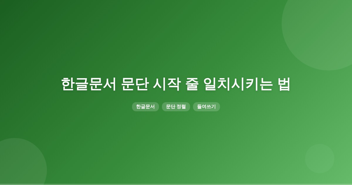 한글문서에서 문단 시작 줄을 일치시키려면, 첫 줄 들여쓰기를 탭(Tab)으로 맞추거나 단락 설정에서 첫 줄 들여쓰기를 지정해야 합니다. 또한, 문단 간격을 통일하면 줄 간격이 고르게 보입니다.