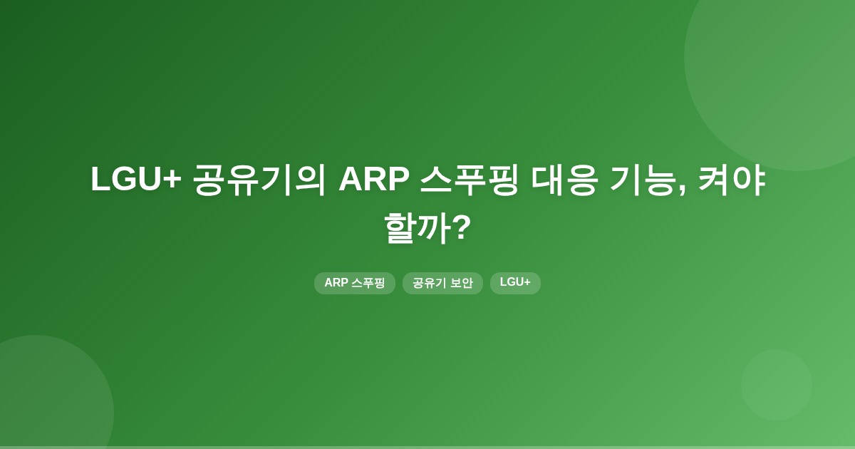 LGU+ 공유기의 ARP 스푸핑 대응 기능은 기본적으로 꺼져 있지만, 이를 켜면 ARP 캐시 위조로 인한 트래픽 가로채기 위험을 줄일 수 있습니다. 그러나 정상 ARP 갱신이 지연될 수 있어 상황에 따라 신중한 선택이 필요합니다.