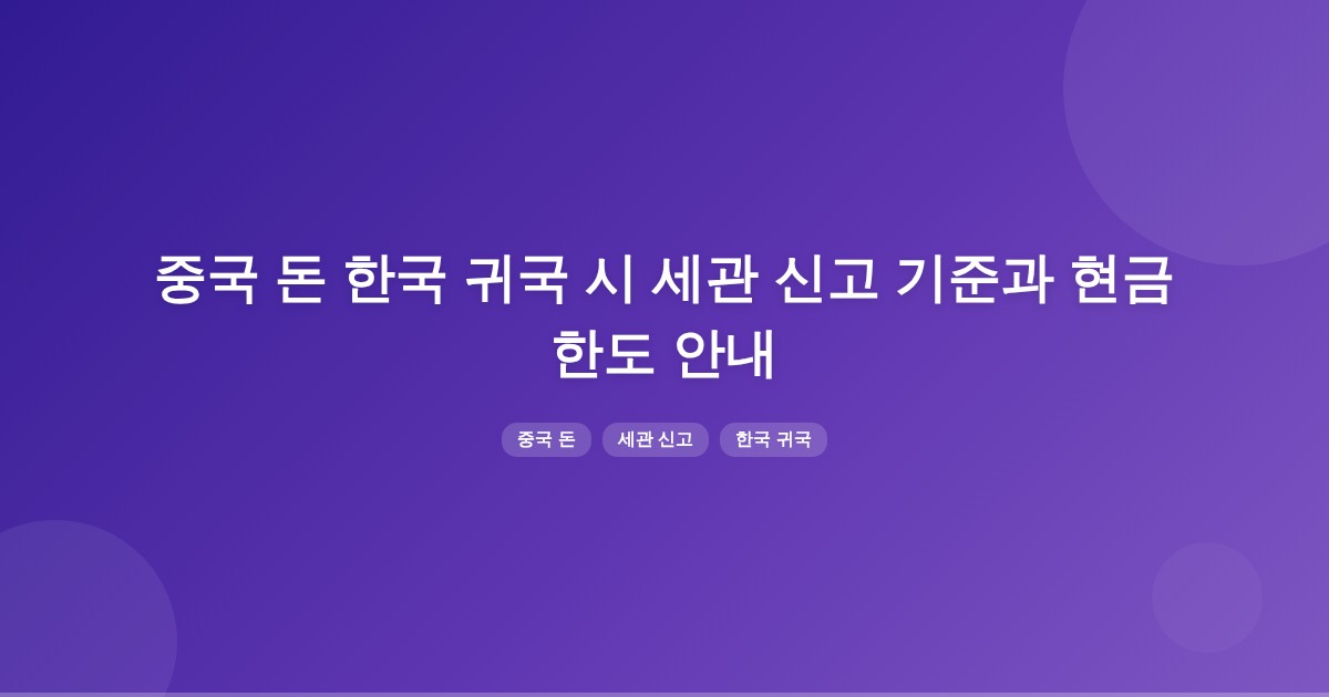 중국에서 한국으로 귀국할 때, $10,000(미국 달러) 이상을 가져갈 경우 세관 신고가 필요합니다. 신고를 하지 않으면 과태료나 처벌의 위험이 있으니, 미리 신고하는 것이 좋습니다.