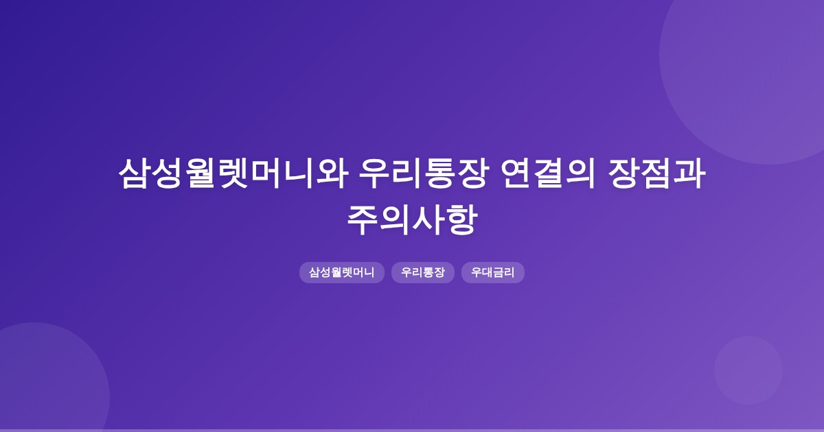 삼성월렛머니와 우리통장을 연결하면 우대금리와 수수료 면제 혜택을 받을 수 있어 장기적으로 유리합니다. 그러나 우대 조건을 충족하지 못할 경우 혜택이 사라질 수 있으므로 주의가 필요합니다.