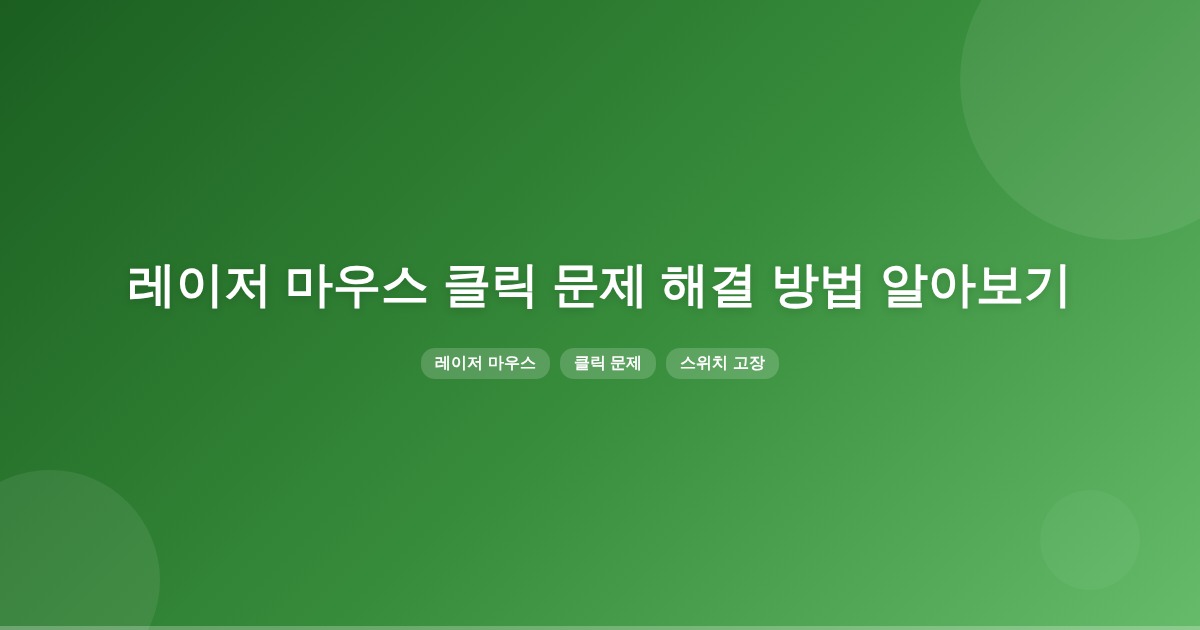 레이저 마우스 클릭 시 꾹 눌리는 현상은 주로 버튼 스위치의 접점 문제나 버튼 주변의 오염으로 발생합니다. 이를 해결하기 위해서는 버튼 청소와 스위치 점검이 필요합니다.