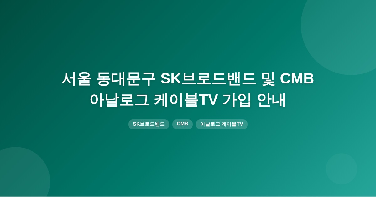 서울 동대문구에서 SK브로드밴드(구 티브로드)와 CMB 아날로그 케이블TV 가입은 주로 유선방송 및 초고속 인터넷 서비스의 결합 상품으로 이루어집니다. 가입자는 설치 가능 지역을 확인하고, 약정 기간에 따라 요금이 달라지므로 주의해야 합니다.