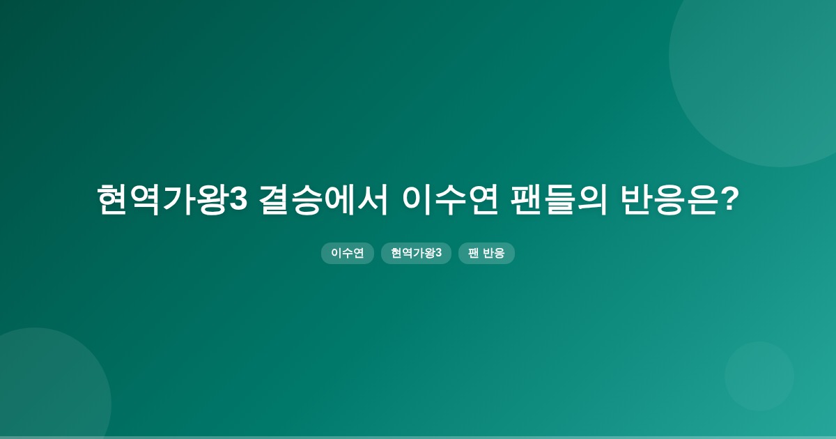 이수연의 결승전 무대는 팬들과 대중에게 큰 감동을 주었으며, 팬들은 그녀의 실력과 열정을 높이 평가하고 있습니다. 또한, 결승전에서의 공정한 경쟁을 바라는 목소리도 있었습니다.