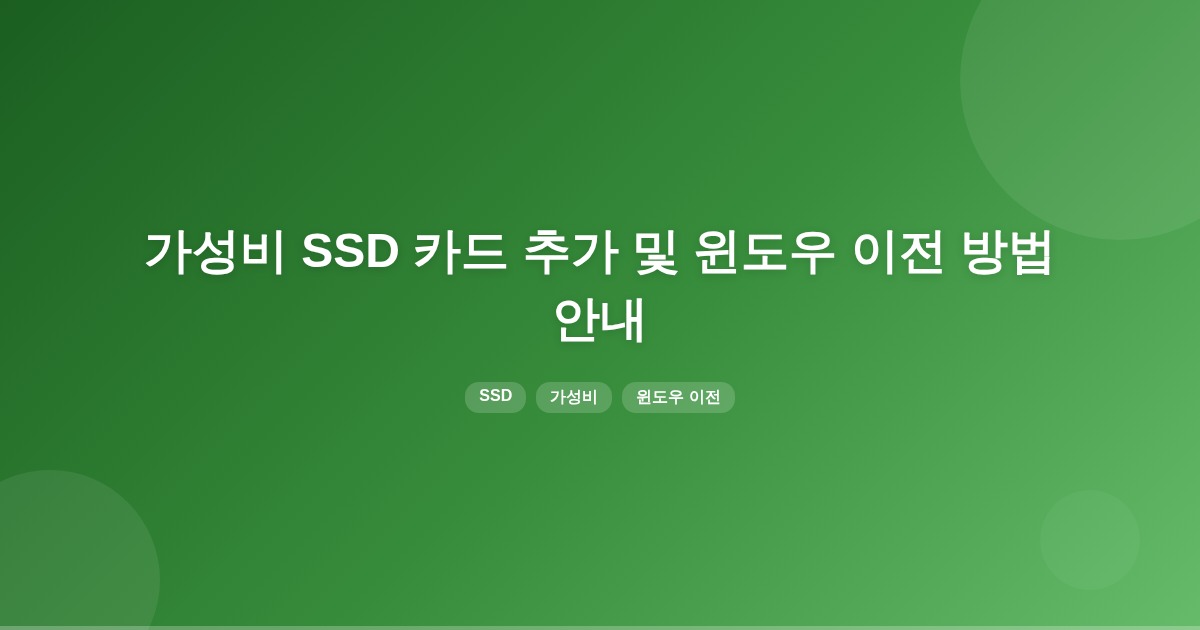 가성비 SSD 카드 추가와 윈도우 이전 방법 안내