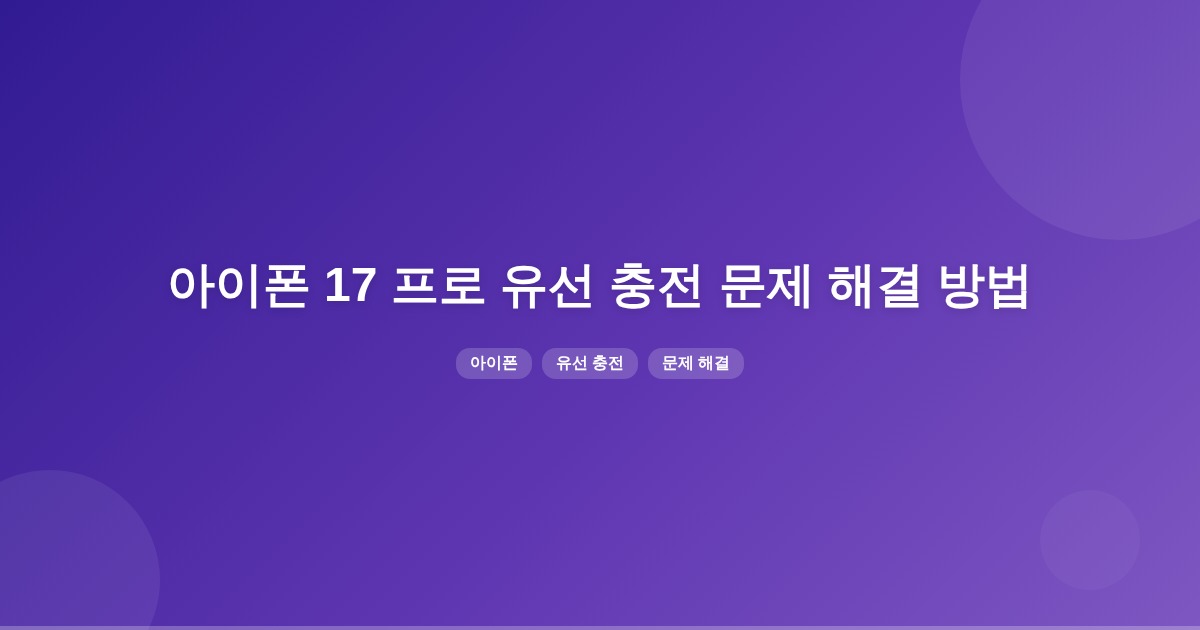 아이폰 17 프로의 유선 충전 문제는 케이블, 충전기, 포트, 설정, 배터리 상태 등 여러 원인으로 발생할 수 있습니다. 단계별 점검을 통해 문제를 해결할 수 있습니다.