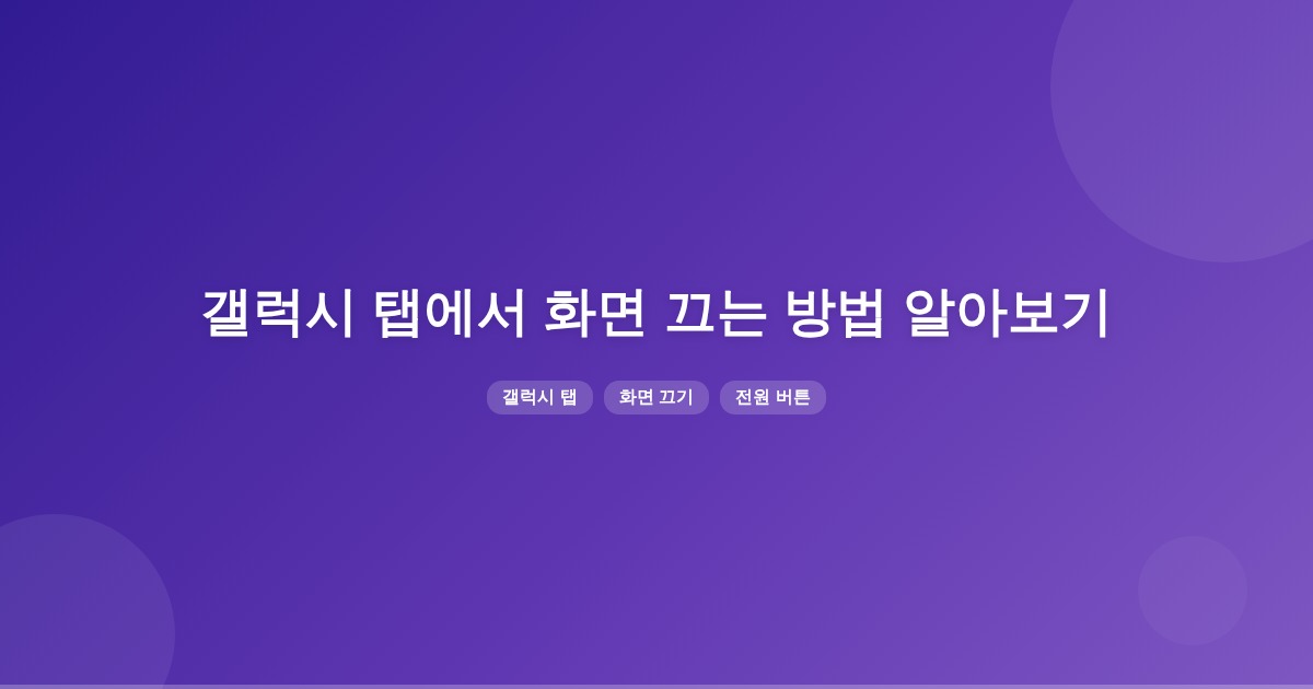 갤럭시 탭에서 화면을 끄려면 전원 버튼을 길게 눌러 ‘전원 끄기’ 메뉴에서 ‘꺼짐’을 선택하면 됩니다. 또한, 측면 버튼 설정을 ‘전원 끄기 메뉴’로 바꿀 수 있습니다.