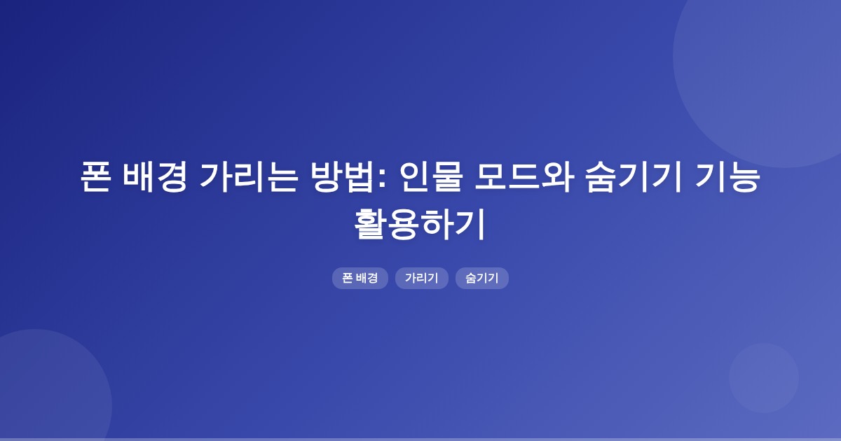 폰 배경을 가리는 방법으로는 사진 촬영 시 인물 모드를 사용하여 배경을 흐리게 하거나, 카메라 홀을 감추는 설정이 있습니다. 또한, iPhone에서는 사진과 앱을 숨기는 기능을 통해 개인 정보를 보호할 수 있습니다.