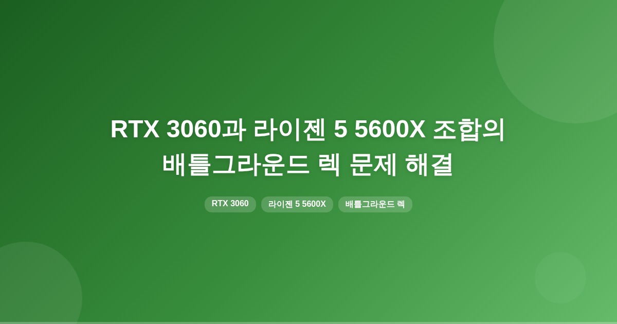 배틀그라운드에서 RTX 3060과 라이젠 5 5600X 조합의 렉 문제는 주로 해상도와 그래픽 설정, 메모리 설정, 드라이버 상태, 온도 및 전원 관리 문제로 발생합니다. 게임 내 설정을 낮추고, 메모리 속도를 최적화하며, 드라이버를 최신 상태로 유지하는 것이 중요합니다.