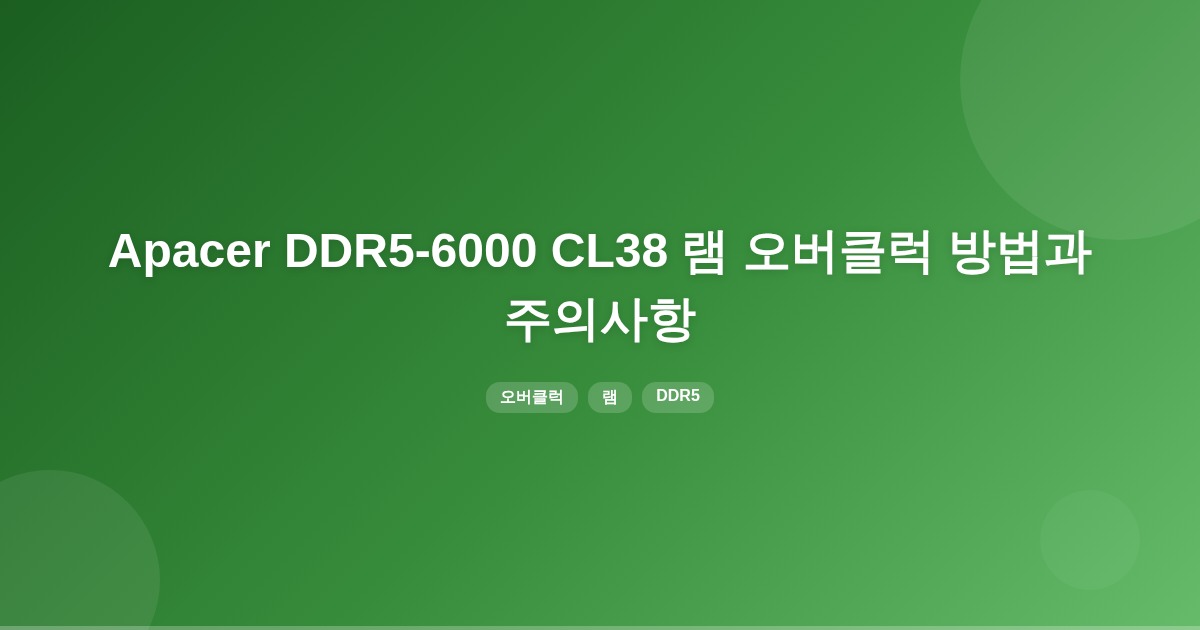 Apacer DDR5-6000 CL38 램을 오버클럭하면 성능 향상이 가능하지만, 전압과 온도 변화로 인해 수명에 영향을 미칠 수 있습니다. 안정성을 확보하기 위해서는 발열 관리와 테스트가 필수적입니다.