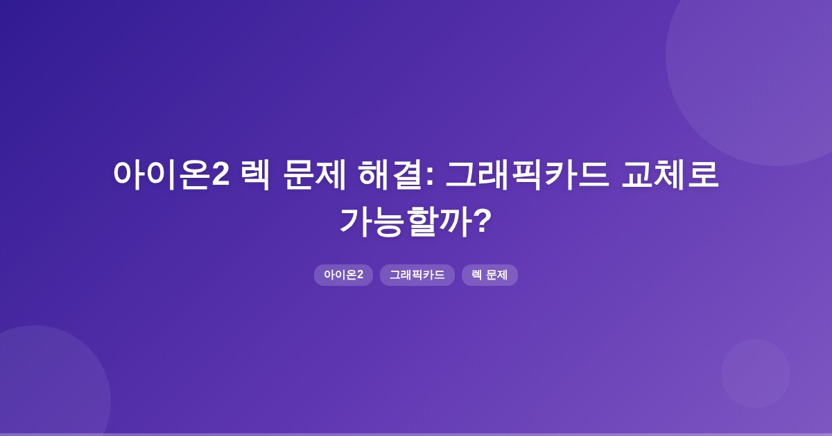 아이온2에서 그래픽카드 교체로 렉 문제를 해결하려면 현재 사양이 권장 사양에 부합해야 합니다. 권장 사양을 충족하지 못할 경우, 그래픽카드만 교체하는 것만으로는 성능 개선이 어려울 수 있습니다.