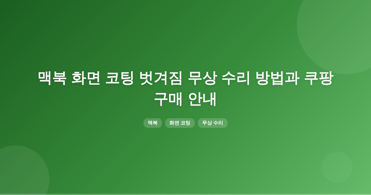 맥북 화면 코팅 벗겨짐은 무상 수리 가능성이 있지만, 구매일 기준 3년 또는 내년 10월 이전 중 더 긴 기간이 적용됩니다. 쿠팡에서 구매한 경우에도 애플 공식 서비스센터에서 점검을 받아야 합니다.