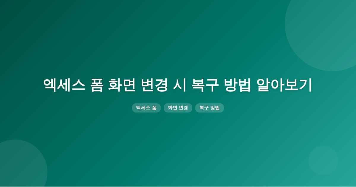 엑세스 폼 화면이 갑자기 바뀌었다면, 해상도나 배율을 확인하고 최근 설치한 소프트웨어를 점검해 보세요. 문제가 지속된다면 시스템 설정을 초기화하거나 프로그램을 재시작해 보세요.