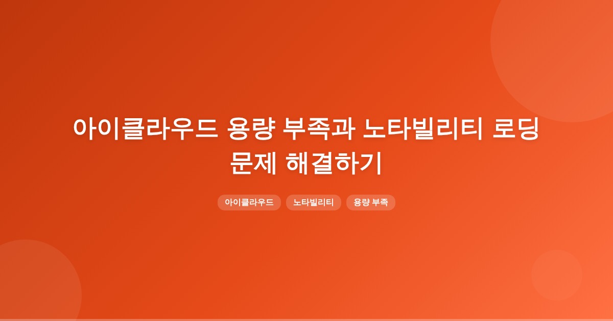 아이클라우드 용량이 부족하면 노타빌리티의 동기화가 원활하게 진행되지 않아 로딩 지연이 발생할 수 있습니다. 이 경우, 먼저 저장공간을 정리하고 필요 시 유료 저장공간을 구매하는 방법이 있습니다.