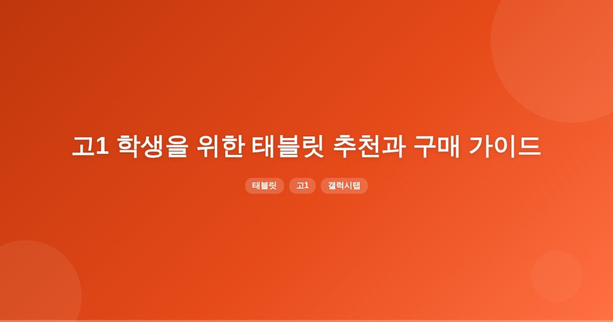 고1 학생이 태블릿을 선택할 때는 주요 용도, 예산, 운영체제를 고려해야 합니다. 갤럭시 유저라면 갤럭시탭이 파일 연동성 면에서 유리하며, 추천 모델로는 갤럭시탭 S8과 아이패드 10세대가 있습니다.