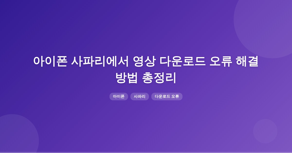 아이폰 사파리에서 영상 다운로드 오류는 네트워크 불안정, 저장공간 부족, 사파리 설정 문제 등으로 발생할 수 있습니다. 기기를 재부팅하고 저장공간을 확보한 후, 사파리의 설정을 점검하여 문제를 해결해 보세요.