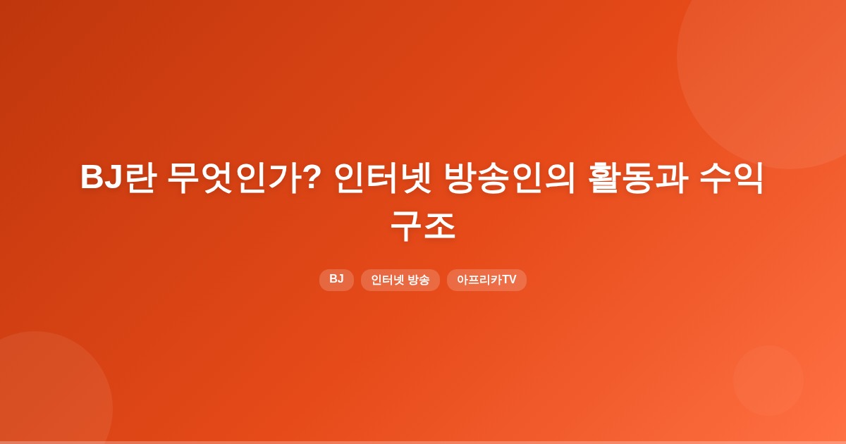 BJ는 아프리카TV 등에서 실시간 방송을 통해 시청자와 소통하며, 후원, 광고, 플랫폼 수수료 등으로 수익을 얻는 인터넷 방송인을 말합니다. BJ 활동은 콘텐츠 방향과 방송 시간에 따라 수익이 달라지므로 신중한 계약이 필요합니다.