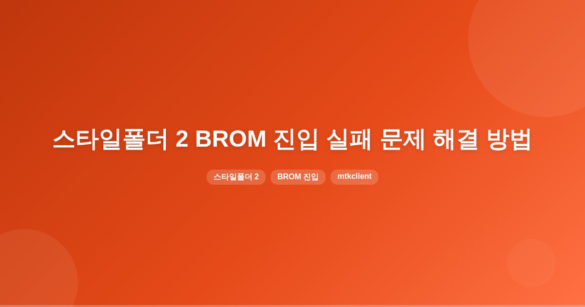 스타일폴더 2(AT-M120)에서 mtkclient를 통한 BROM 진입 실패 문제는 USB 드라이버 및 연결 상태와 관련이 있을 수 있습니다. 기기 모델과 버전을 정확히 확인하고, 드라이버 설치 여부를 점검하는 것이 중요합니다.