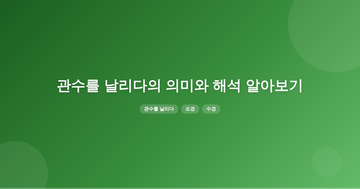 관수를 날리다’는 조경 및 수경 분야에서 ‘관수 시설을 설치하다’는 의미로 사용될 가능성이 높습니다. 그러나 문맥에 따라 다르게 해석될 수 있으므로, 구체적인 상황이 중요합니다.