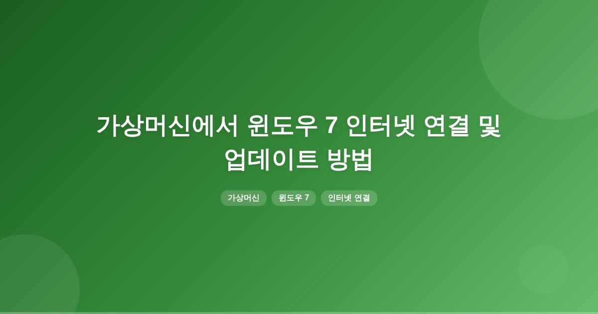 가상머신에 윈도우 7을 설치한 후 인터넷 연결이 안 되는 경우, 네트워크 어댑터 설정을 브리지 모드로 변경하고 랜카드 드라이버를 설치해야 합니다. 또한, 인터넷이 연결되면 Windows Update를 통해 최신 보안 패치를 적용할 수 있습니다.