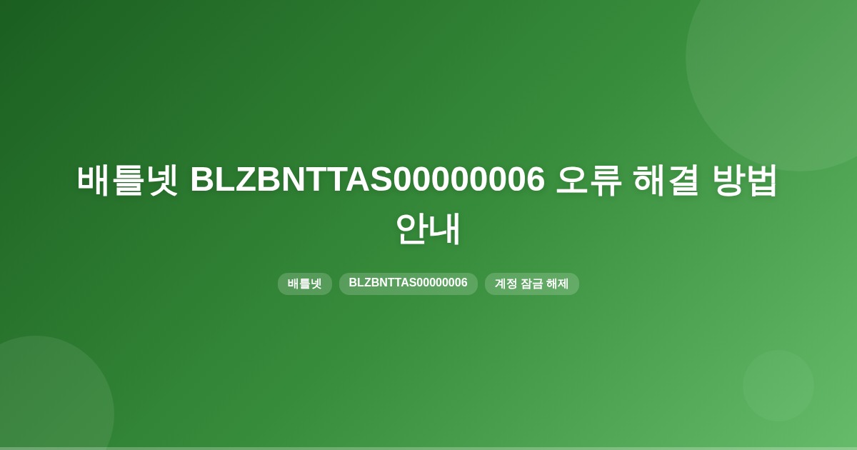 배틀넷 오류 BLZBNTTAS00000006은 계정 도용 의심으로 계정이 정지된 경우가 많습니다. 이 경우 블리자드 고객지원에 문의하여 계정보호조치를 해제해야 합니다.