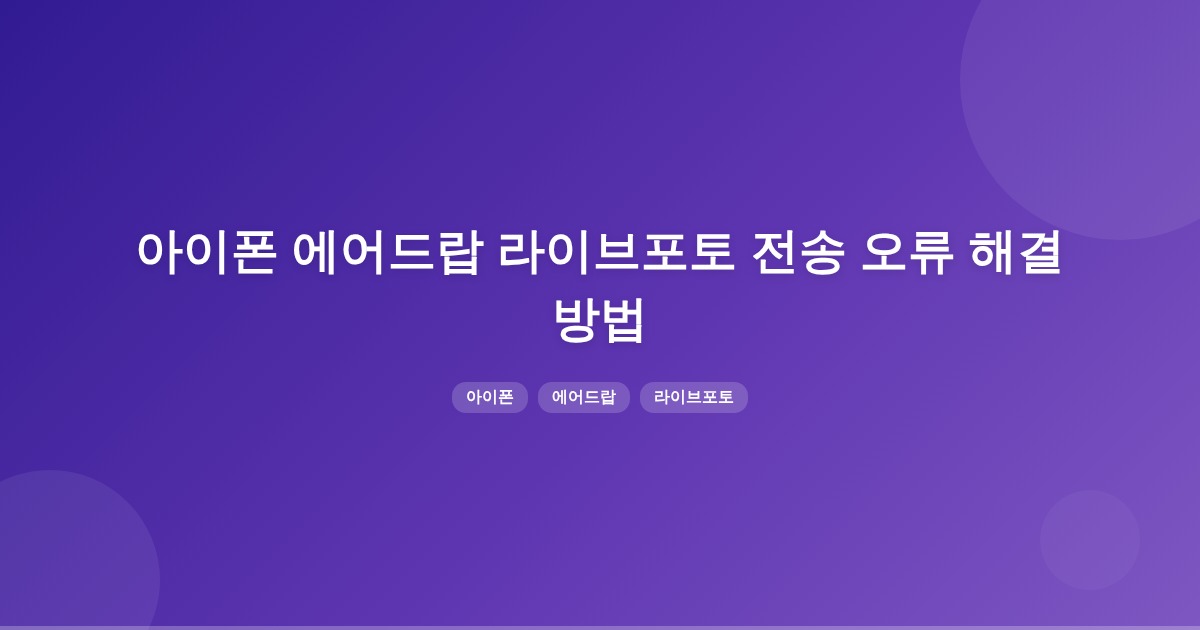 아이폰 6s에서 16 Pro로 라이브포토 전송이 실패하는 이유는 에어드랍 설정, 네트워크 상태, 라이브포토 설정 등이 원인일 수 있습니다. 에어드랍 수신 범위를 조정하고, 와이파이·블루투스를 점검한 후, 라이브포토를 일반 사진으로 변환하여 전송을 시도해 보세요.