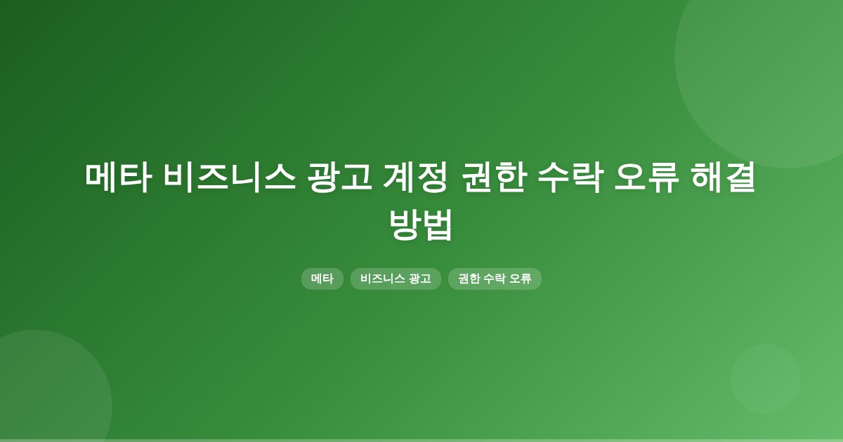 메타 비즈니스 광고 계정 권한 수락 오류는 계정 연결 상태, 2단계 인증, 또는 일시 제한 때문에 발생할 수 있습니다. 권한이 부여된 계정으로 로그인 후 자산 할당을 확인하고, 2단계 인증을 활성화한 뒤 재시도하는 것이 가장 효과적인 해결 방법입니다.