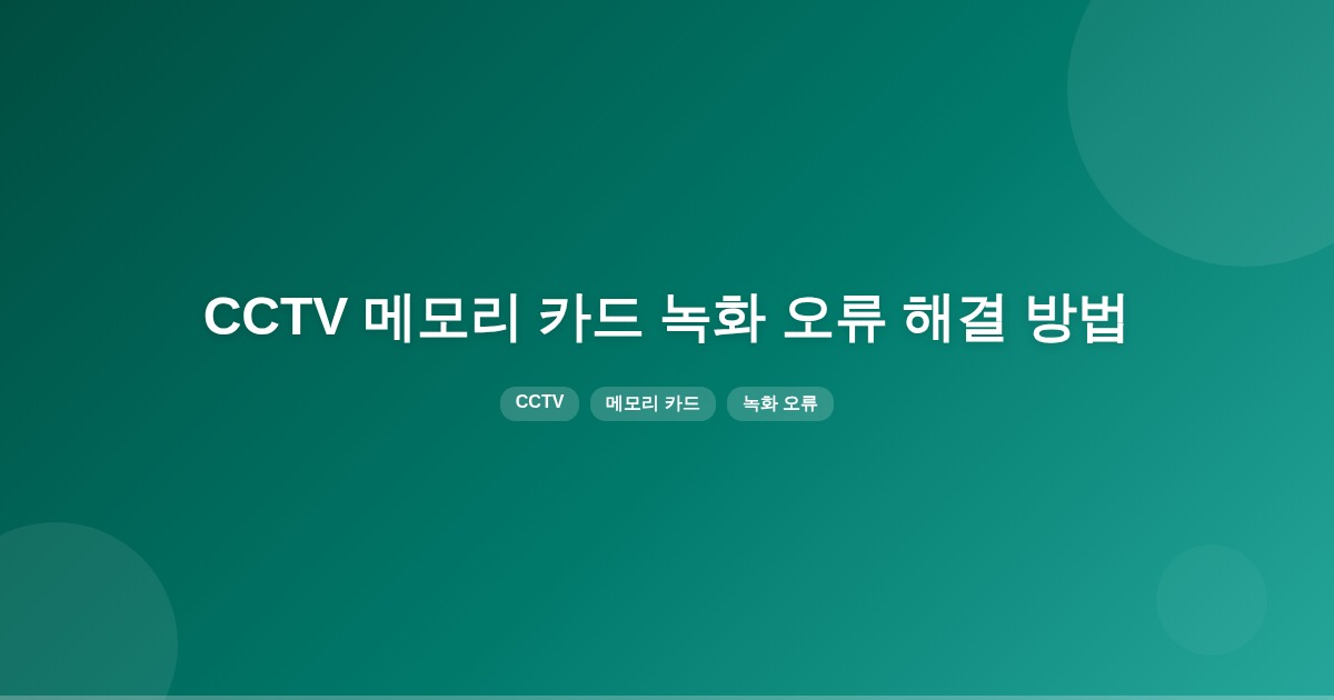 CCTV 메모리 카드의 녹화 오류는 카드 성능 저하, 파일 시스템 문제, 카드 교체 필요 등으로 발생할 수 있습니다. 카메라 전원이 꺼진 상태에서 카드 삽입 및 제거를 권장하며, 카드 포맷과 속도 점검이 필요합니다.