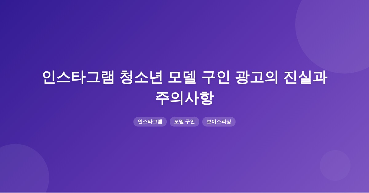 인스타그램에서 청소년 모델 구인 광고는 종종 보이스피싱일 수 있습니다. 금전이나 민감정보를 요구하는 경우, 공식 채널을 통해 확인하는 것이 중요합니다.