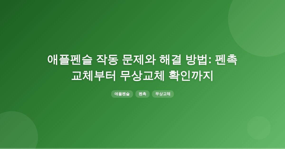 애플펜슬은 펜촉이 소모품으로, 정품/비정품 여부와 관계없이 교체가 필요할 수 있습니다. 무상 교체 가능성은 애플의 공식 보증 정책에 따라 다르므로, 구매일과 AppleCare+ 적용 여부를 확인하는 것이 중요합니다.