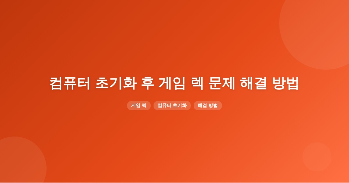 컴퓨터 초기화 후 게임 렉이 발생하는 이유는 드라이버 설정 초기화, 네트워크 문제, 악성코드 등 다양합니다. 그래픽 드라이버를 클린 설치하고, 전원 옵션을 ‘고성능’으로 설정하며, 백그라운드 프로그램을 점검하는 것이 중요합니다.