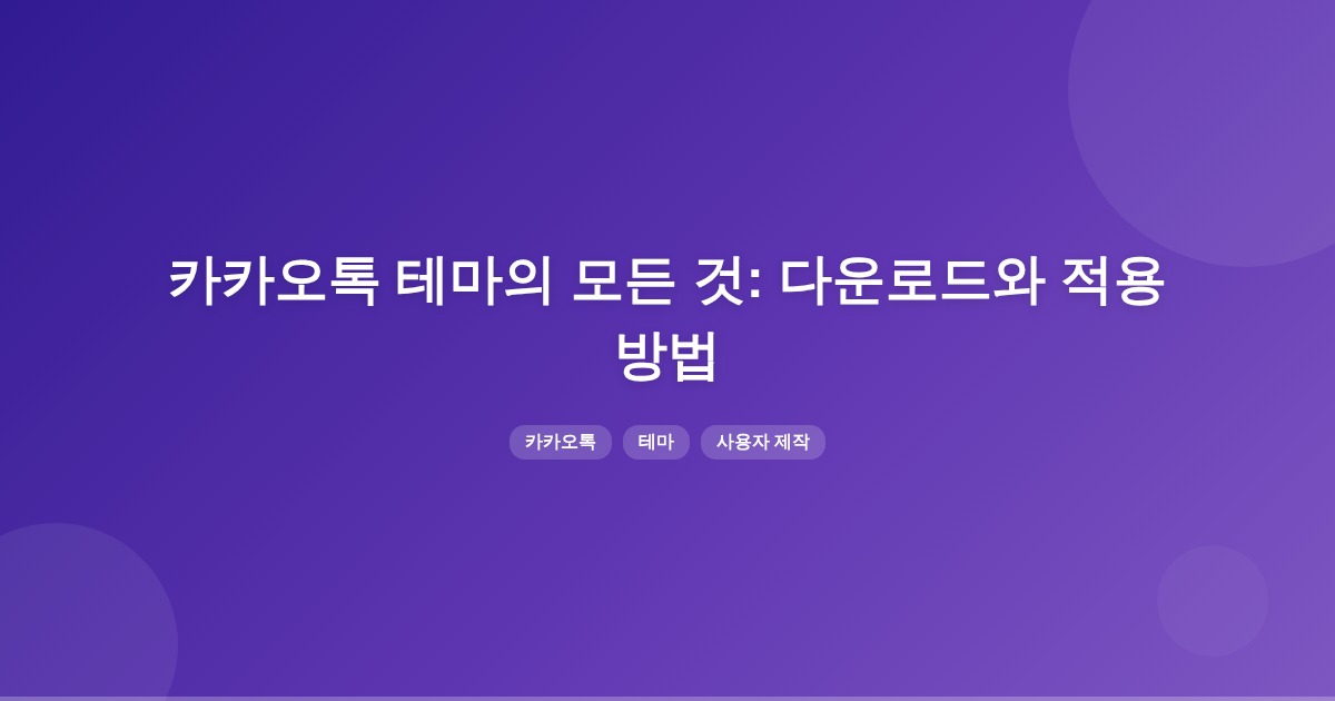 카카오톡 테마는 기본 테마 외에 사용자 제작 테마를 다운로드하여 적용할 수 있는 기능입니다. 카카오톡 앱 내에서 다양한 카테고리의 테마를 선택하고 적용할 수 있으며, 외부에서 받은 테마 파일도 사용할 수 있습니다.