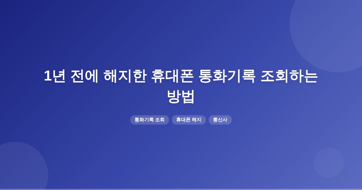 1년 전에 해지한 휴대폰의 통화기록은 통신사에 따라 보관 기간이 다르며, 일반적으로 1~3개월입니다. 해지 후 가능한 한 빨리 통화기록을 조회하는 것이 중요합니다.