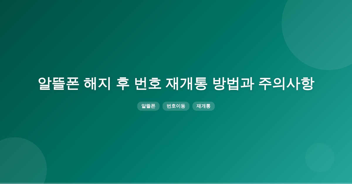 알뜰폰 해지 후 같은 번호로 재개통하려면 번호이동(MNP)을 통해 재가입하는 것이 가장 확실합니다. 다만, 해지 후에는 번호가 회선에서 해제되어 복구가 어려울 수 있으며, 번호이동에는 90일 미만 가입 제한이 있을 수 있습니다.
