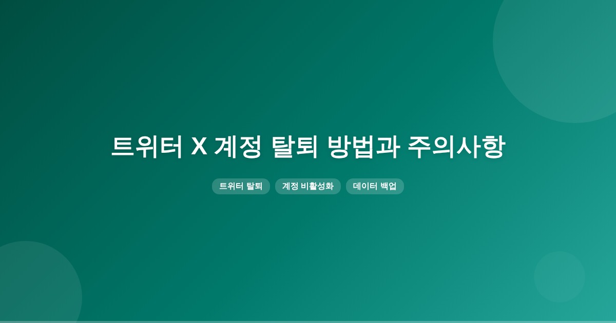 트위터 X 계정을 탈퇴하려면 먼저 비활성화한 뒤 30일 이내에 로그인하지 않으면 자동으로 삭제됩니다. 탈퇴 전에는 데이터 백업을 하고, 30일 유예기간 내에 복구 가능성을 고려해야 합니다.