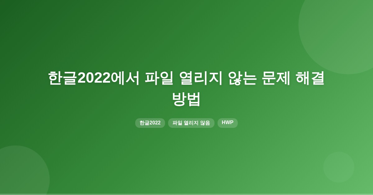 한글2022에서 파일이 열리지 않는 경우는 파일 형상 손상, 저장 형식 불일치, 배포용 문서 등의 이유로 발생할 수 있습니다. 파일 형식을 확인하고, 필요한 경우 복구 시도 또는 변환 방법을 활용하는 것이 좋습니다.