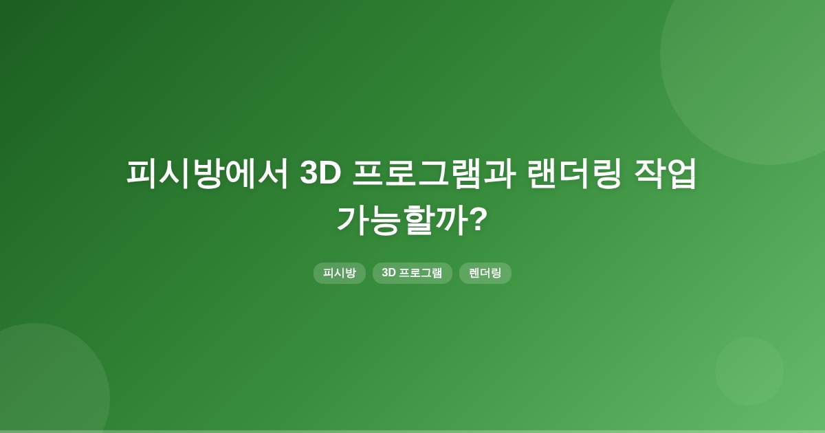 피시방에서 D5 Render와 같은 GPU 기반의 3D 렌더링 프로그램을 사용할 수 있으며, 이 프로그램은 실시간 렌더링과 고품질 결과물을 제공합니다. 그러나 GPU 성능이 중요하므로, 사용하려는 프로그램의 요구 사항을 충족하는지 확인해야 합니다.