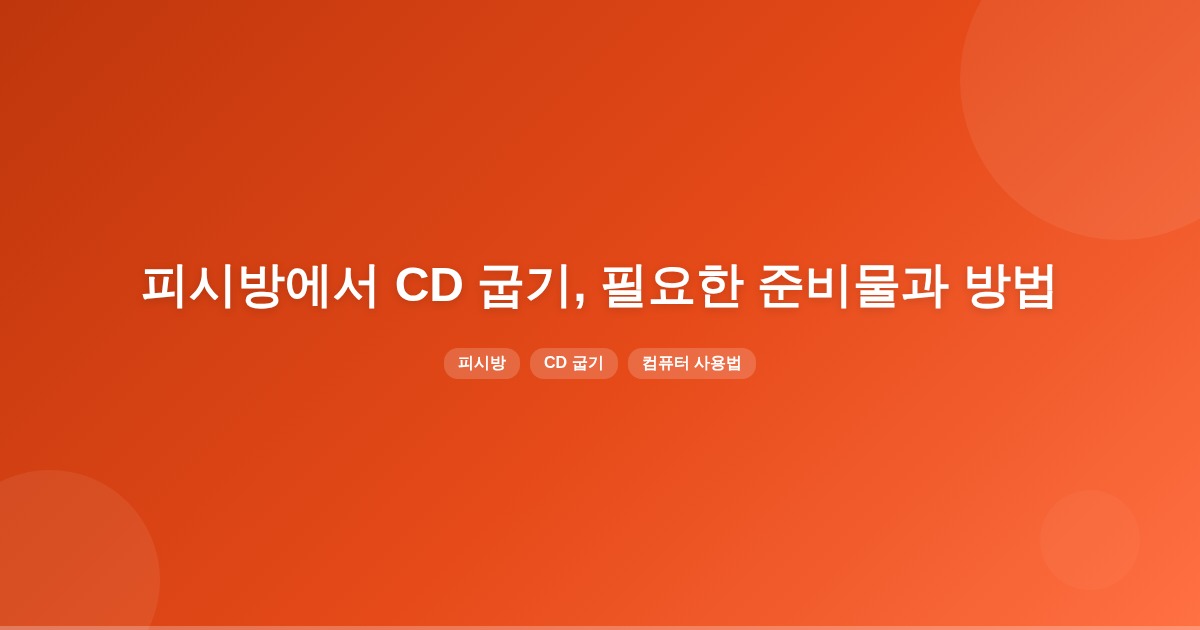 피시방에서 CD를 굽기 위해서는 공 CD-R 또는 CD-RW, CD/DVD 드라이브, 그리고 굽기 소프트웨어가 필요합니다. Windows의 기본 기능을 활용하여 파일을 선택하고 굽기를 진행할 수 있습니다.