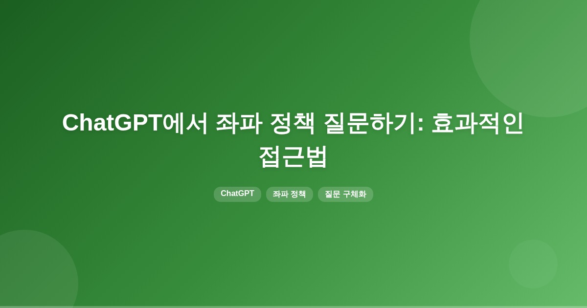 ChatGPT로부터 좌파 정책에 대한 합리적이고 사실 기반의 답변을 얻기 위해서는 질문을 구체화하고, 근거를 요구하는 것이 중요합니다. 또한, 제공된 정보는 공식 자료로 교차 검증하는 절차가 필요합니다.