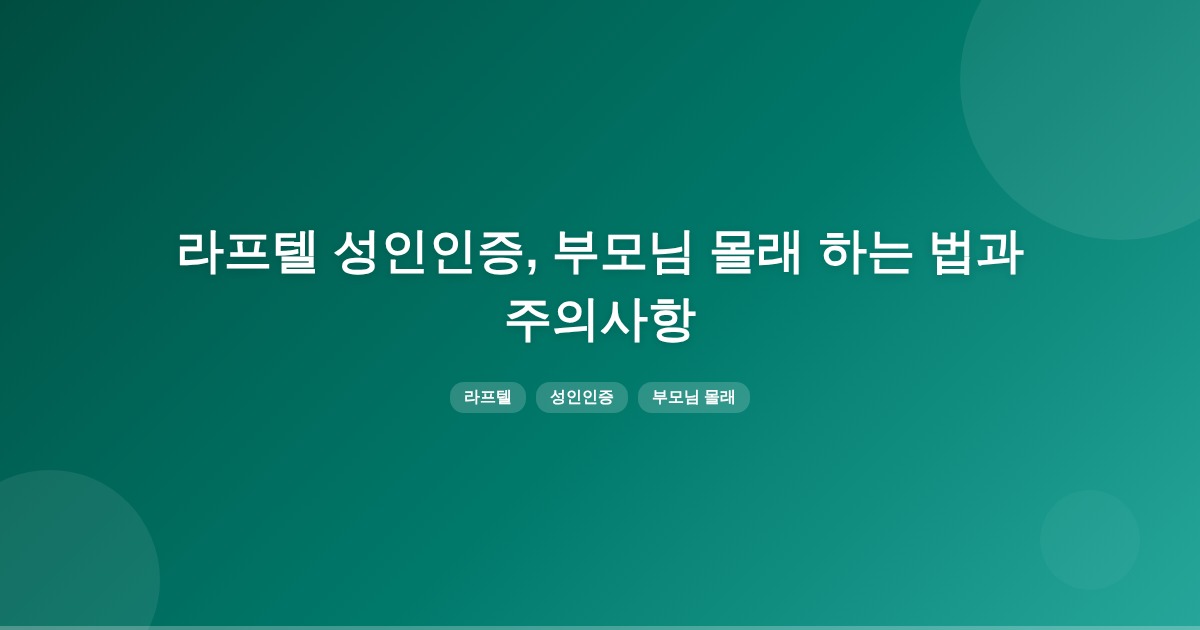 라프텔 성인인증은 본인 명의 휴대폰으로 진행되며, 인증번호는 부모님 폰으로 받을 수 있지만 결제 관련 문자가 가는지 여부는 명확하지 않습니다. 부모님 폰을 사용하는 것은 권장되지 않습니다.